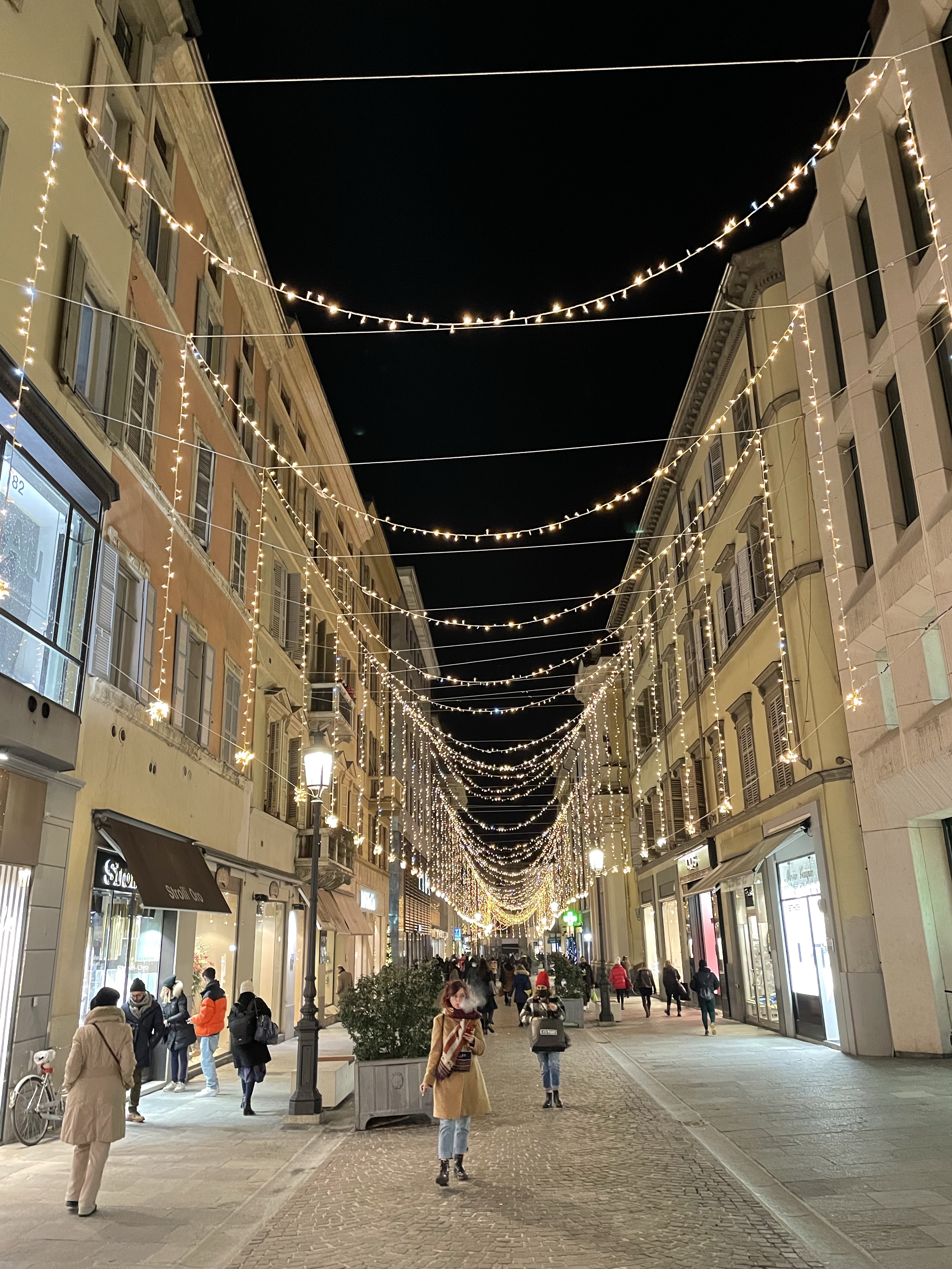 Enjoy the Christmas lights in Parma, where I work. – Yup!Enjoy the Christmas lights in Reggio, where I used to live. – Yup!